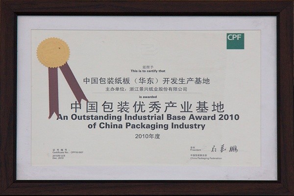 | 2006. | 04. | 以诚为本赢在诚信9001在世界包装大会上被评为“中国包装龙头企业”,董事长朱在龙荣获“中国杰出包装企业家”,公司产品“牛皮箱板纸”获得“中国包装名牌产品”称号。 |